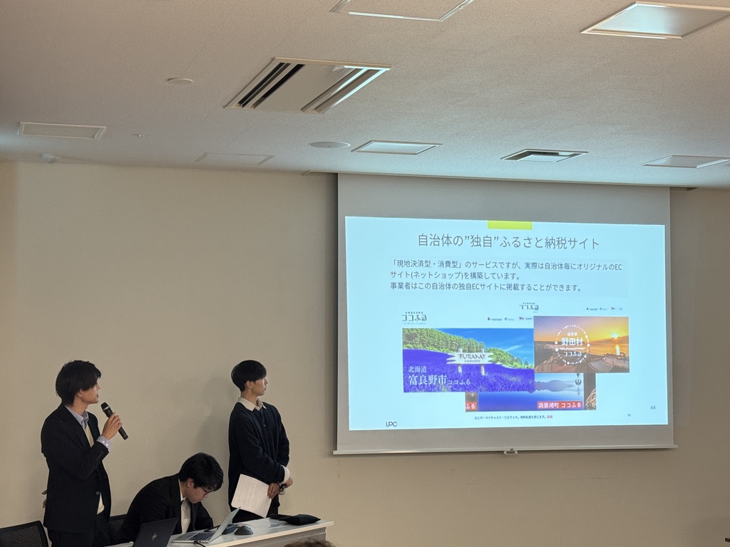 発表では、富良野市が取り組むふるさと納税を軸に、寄附額増加の背景、地域事業者の取り組み、今後の寄附獲得に向けた示唆など、学生ならではの学術的視点に基づく分析結果が共有されました。