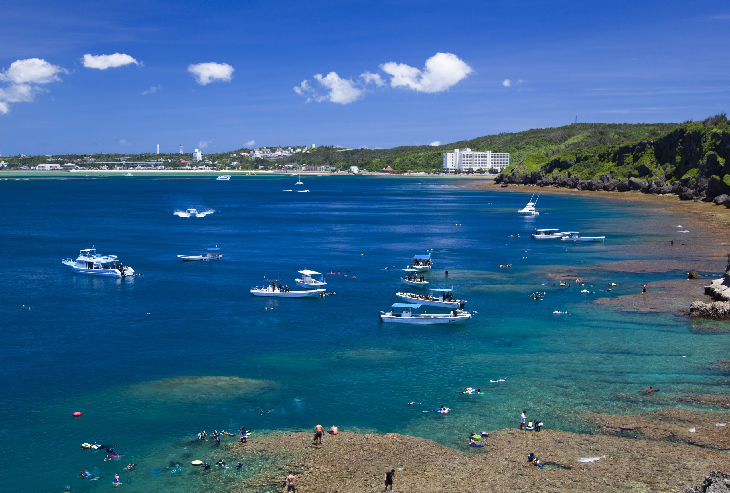 恩納村は沖縄本島の西海岸中央部に位置し、那覇空港から車で約50分、海岸沿いを走る国道58号線に沿ってリゾートホテルが林立する日本屈指のリゾート地である。